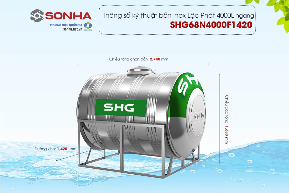Thông số bồn Inox Lộc Phát 4000L ngang - SHG68N4000F1420