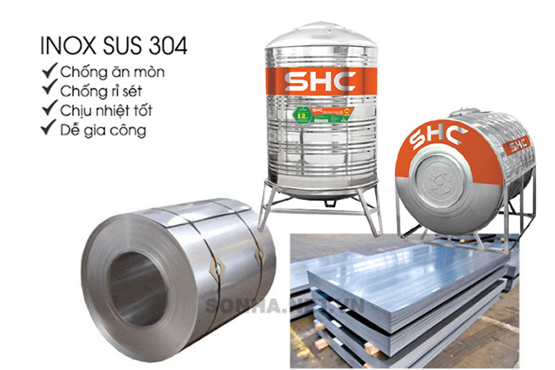 Tính năng vượt trội của các tất cả các bồn inox Sơn Hà là được cấu thành từ 100% vật liệu inox SUS304, hiện là dòng inox được đánh giá cao và chiếm lòng tin người tiêu dùng nhất thị trường. Inox SUS304, tên gọi khác là thép không gỉ, được cấu tạo từ hợp kim crom, magan, nito và pha trộn ít biến màu, có độ dẻo, bền rất cao, bề mặt trơn mượt.