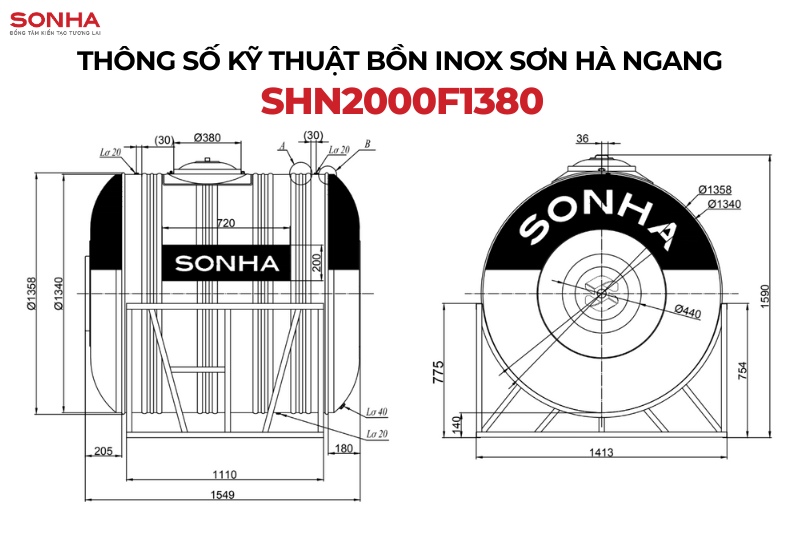 | Tên sản phẩm | Bồn nước inox Sơn Hà 2000L (Φ1380) ngang |