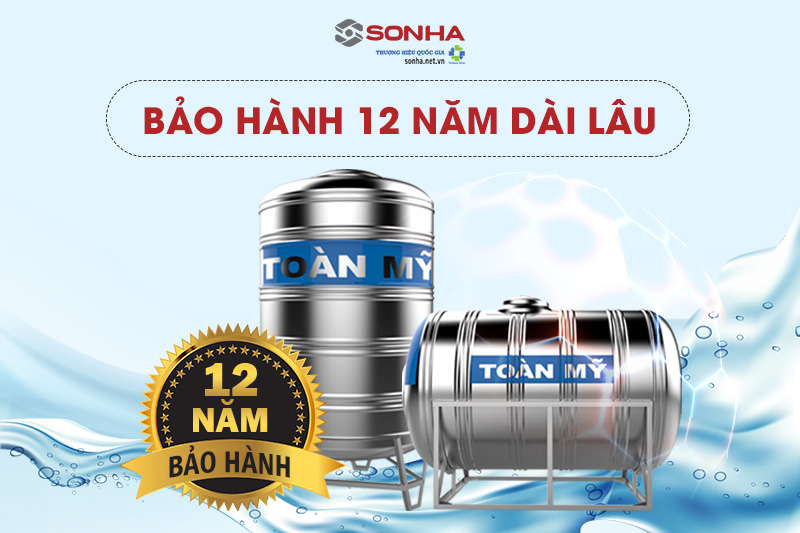 Bồn inox Toàn Mỹ có thời gian bảo hành lên đến 12 năm uy tín, nên bạn hoàn toàn có thể an tâm về chất lượng sản phẩm.