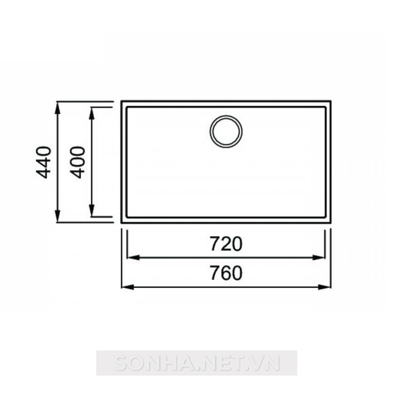 Kích thước chậu đá Konox Sink Naros 760S Grey