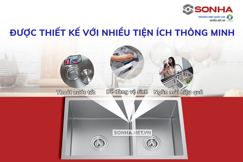 Không chỉ có tính thẩm mỹ và độ bền bỉ, sản phẩm chậu rửa bát đúc 2 hố Bancoot 1603R này còn được người tiêu dùng và giới kỹ thuật đánh giá cao nhờ những ưu điểm cụ thể như sau: