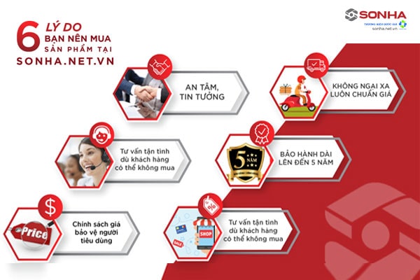 Mục tiêu của chúng tôi là nỗ lực hết mình mang đến cho người Việt những sản phẩm tốt nhất bằng trách nhiệm, sự trân trọng và tình yêu của mình. Chính vì thế khi mua hàng tại Sơn Hà bạn sẽ hoàn toàn yên tâm bởi 6 lí do sau đây.