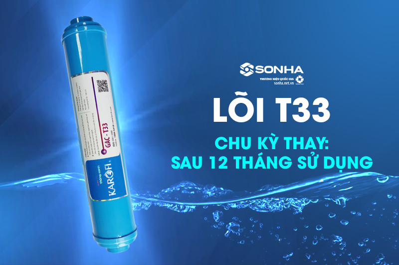 - Chức năng nổi bật của lõi T33 đó là khử mùi, cân bằng pH, tạo khoáng chất và bổ sung canxi trong nước. Đồng thời, giúp các chất bẩn, độc hại, kim loại nặng được xử lý một cách triệt để.