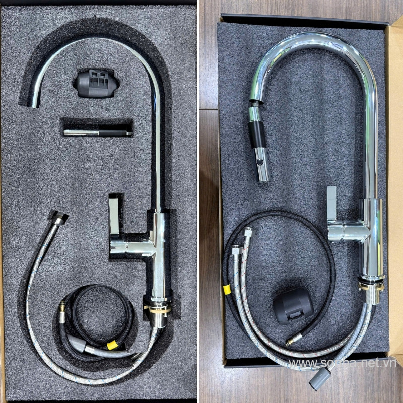 Tính năng này giúp tăng hiệu quả làm sạch, tiết kiệm thời gian và hạn chế bắn nước ra ngoài, đặc biệt phù hợp với những gia đình thường xuyên nấu nướng. Đặc biệt kiểu dáng vòi rửa này hoàn toàn phù hợp với cả chậu 2 hố hay chậu 1 hố cỡ lớn.